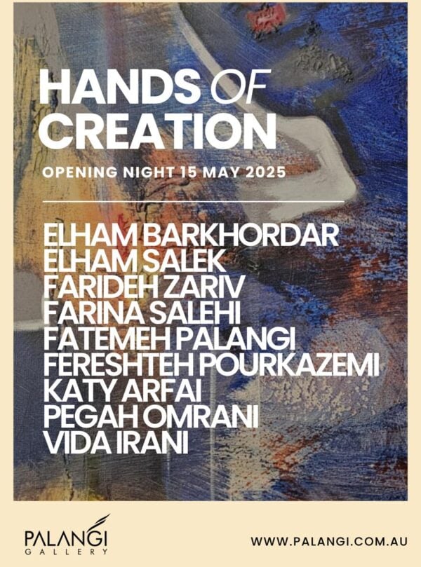 Hands of Creation, a group exhibition at Palangi Gallery, is a celebration of the creative spirit of Persian women artists in honour of International Mother’s Day. From 15 May to 7 June 2025, the gallery transforms into a space where identity, heritage, and the transformative essence of womanhood converge through mixed media, painting, sculpture, and calligraphy.
